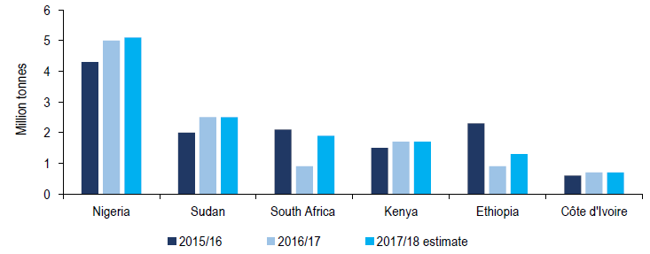 Chart: Key wheat importers in sub-Saharan African region