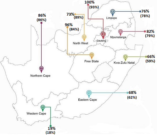 In the Overberg region, the crop is also in good conditions, thanks to the recent showers. In the Southern Cape region, the planting activity is almost complete, also boosted by slight improvement in soil moisture. This is also evident in the province’s dam levels which averaged 19 percent in the week of 28 May 2018, up by 2 percentage points from the previous week and a percentage point from the corresponding period last year (see Map below).