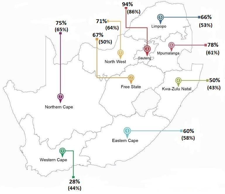 South Africa’s average dam levels: week ended 08 January 2018 (last year’s figures in brackets – 08 January 2017)