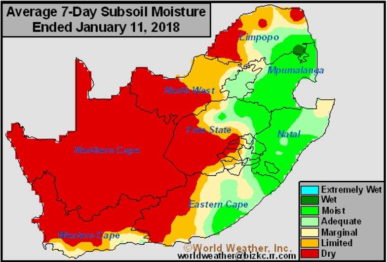 Fortunately, at the time of writing, the weather forecasts were painting an optimistic picture of between 16 and 80 millimetres of rainfall in weeks between 15 and 31 January 2018. While this will not be sufficient to fully replenish soil moisture, it will be a welcome development following weeks of dryness.