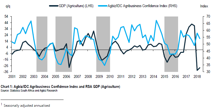 After contracting by 33.6% q/q in the first quarter of this year, the South African agricultural economy entered technical recession in the second quarter following a further 29.2% q/q contraction. This far exceeded our expectations of a modest shrinkage of around 19% q/q. This data partially reflects the tail-end negative effects of the Western Cape drought, as well as the delayed harvest in the summer crop growing areas of South Africa, particularly the grain and oilseed production regions. This is on the back of a late start of the summer crop season due to unfavourable weather conditions earlier in the year.