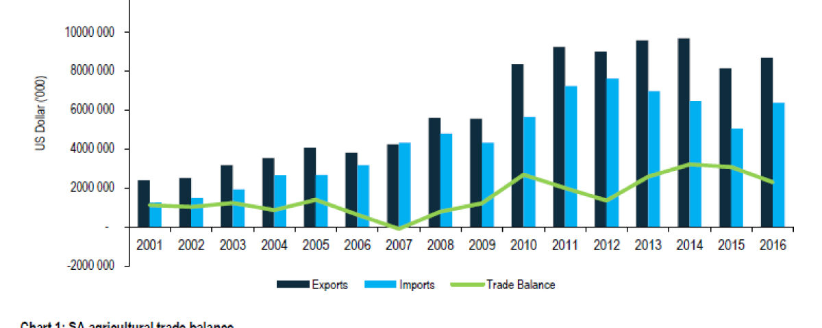 Despite the worst drought in more than a decade, the South Africa’s agricultural sector recorded a positive trade balance of US$2.3 billion in 2016. This was boosted by growth in exports of edible fruits, beverages, spirits and vegetables, with the total agricultural export value amounting to US$8.6 billion, up 6% from 2015. These products are mainly grown in the Western Cape province, which was not as severely affected by the 2016 drought as the rest of the country. Meanwhile, imports also increased by 26% y/y reaching US$6.3 billion – driven by a notable uptick in grain imports on the back of the drought.