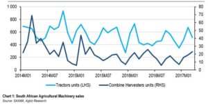 Overall, the optimism in the agricultural machinery market could be short-lived, as the weakening Rand against the US dollar could increase costs of the equipment. In addition, escalating farm debt could also reduce some farmers’ ability to further invest in machinery. In 2015 the total real farm debt was at R142 billion, which is a record level in a database starting from 1980.